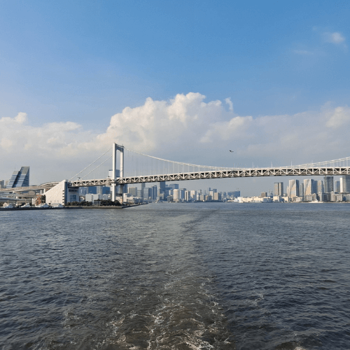 Le luci si riflettono nell’acqua scura, creando un paesaggio quasi surreale. Il Rainbow Bridge e la Tokyo Tower brillano, mentre in lontananza possiamo scorgere il Tokyo Skytree. Il vento fresco e il dolce movimento della barca ci fanno rilassare, permettendoci di assaporare la bellezza del momento.
