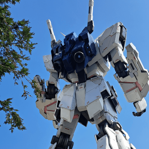 Poco più avanti, decidiamo di esplorare uno dei grandi centri commerciali che caratterizzano l’isola. Il DiverCity Tokyo Plaza è un mondo a sé, con negozi di ogni tipo e ristoranti tematici che soddisfano ogni gusto. Ma la vera star qui è all’esterno: proprio davanti al centro commerciale ci attende un immenso Gundam, alto quanto un palazzo di sette piani, in tutta la sua gloria meccanica. Mentre ci avviciniamo, lo spettacolo inizia: il robot si muove, le luci si accendono e una colonna sonora epica riempie l’aria. Il pubblico attorno a noi rimane incantato, come se un personaggio di anime avesse preso vita davanti ai nostri occhi. Restiamo lì, affascinati dalla precisione e dalla maestosità della statua, un simbolo della cultura pop giapponese che risuona in tutto il mondo.