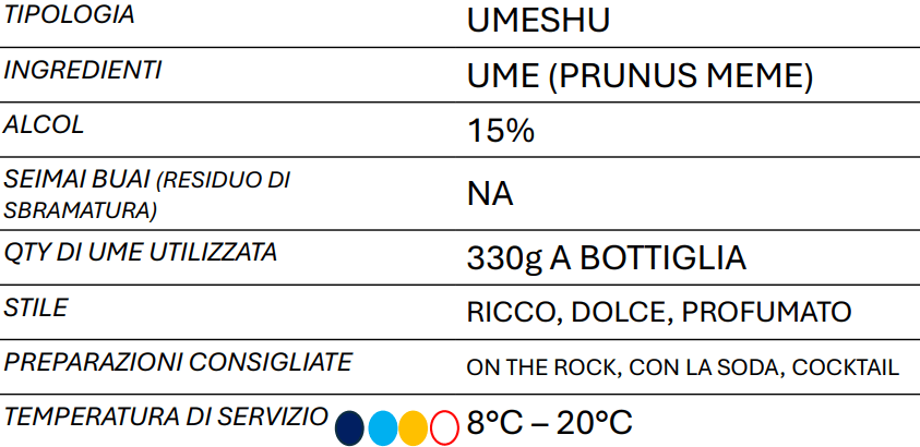 Realizzato con 100% zucchero nero Kokuto, frutti di Ume di alta qualità e una base di spirito di canna con rum scuro, questo umeshu sprigiona un aroma intenso, dolce e complesso. Al palato, offre un equilibrio perfetto tra la dolcezza profonda, note di caramello e la fresca acidità delle prugne, con un finale morbido e persistente.